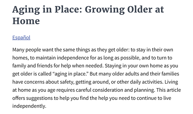 Healthy Aging In Place